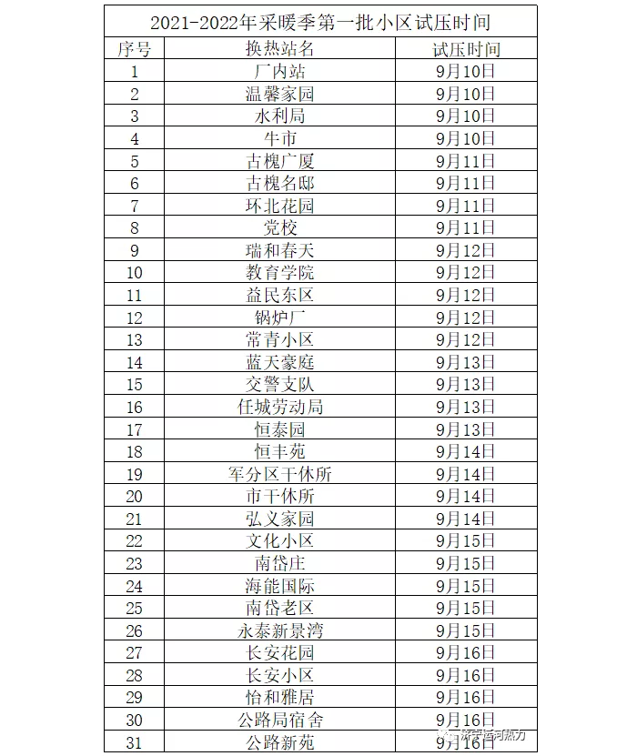 濟寧運河熱力有限公司 2021-2022年采暖季第 一批小區試壓通知